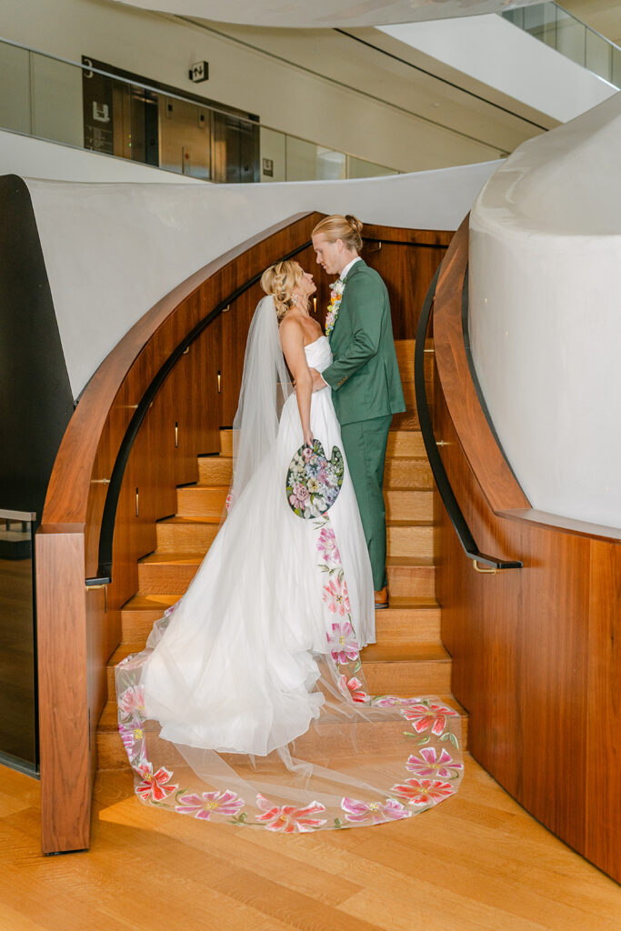The MFA offers a variety of event spaces from the classic indoor ballroom space with a stage, decorated with gorgeous chandeliers, to beautiful garden areas and a modern conservatory with views of the bay. Weddings here feel both refined and artistic, with tons of opportunities for breathtaking photos amid art and architecture.